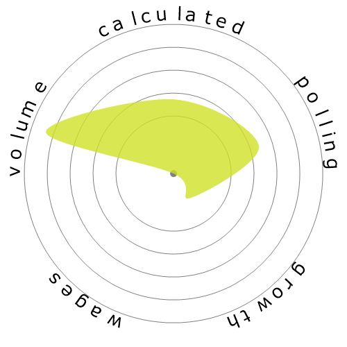 The Snowflake is a visual summary of the five badges: Automation Risk (calculated), Risk (polled), Growth, Wages and Volume. It gives you an instant snapshot of an occupations profile. The colour of the Snowflake relates to its size. The better the occupation scores in relation to others, the larger and greener the Snowflake becomes.